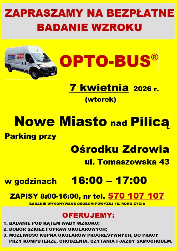 Bezpłatne badanie wzroku Środa, 25-03-2026Data publikacji, Środa, 25-03-2026, Radosław DąbrowskiAutor, Radosław Dąbrowski, 68Ilość wyświetleń, 68