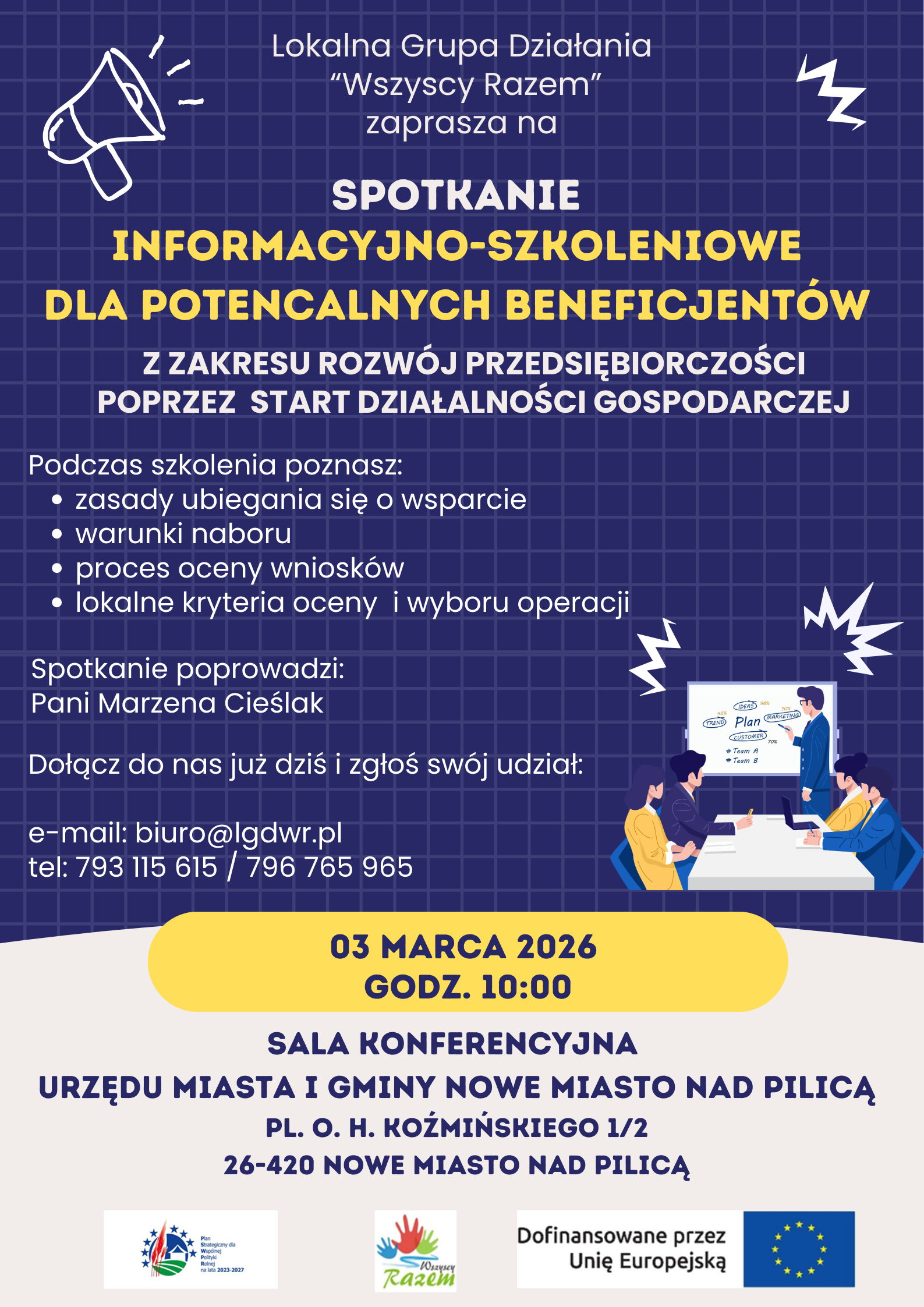 Spotkanie informacyjno - szkoleniowe dla potencjalnych beneficjentów z zakresu „Rozwój przedsiębiorczości poprzez start działalności gospodarczej”